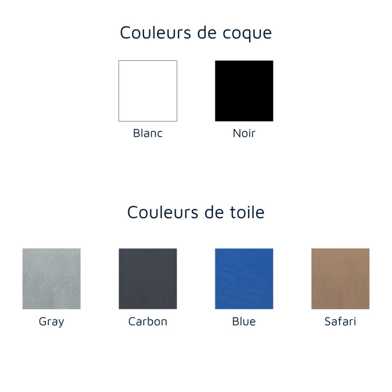 | Ref H2R | Taille | Couleur coque | Couleur toile | Dimensions (cm) | Poids |