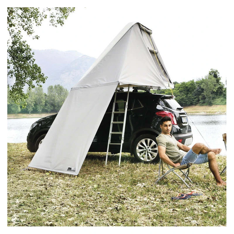 AUTOHOME vous propose un accessoire idĂ©al pour votre tente de toit Columbus ! Cette solette s’adapte parfaitement Ă votre tente de toit et ajoutera une zone d’ombrage en quelques secondes Ă votre campement de bivouac !