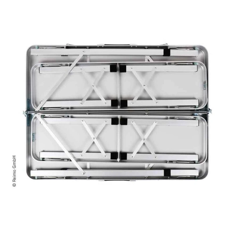 Accessoire de plein air présenté comme une table de pique-nique idéal pour 4 personnes, cette table CAMP4 est vendue avec ses 2 bancs qui sont indépendant de la table, vous pouvez ainsi vous en servir séparément. Le plateau est en MDF (Medium Density Fibreboard = panneau de fibres), le cadre quant à lui est en aluminium pour un gain de poids non négligeable.