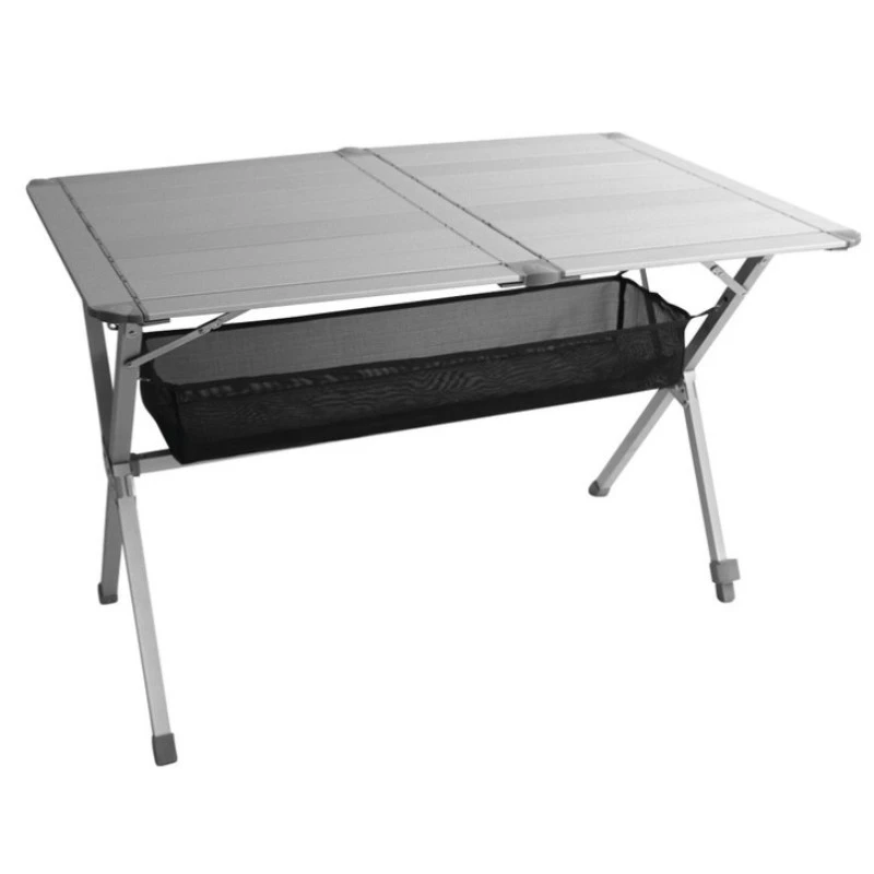 Cette table pour camping-car offre un grand plateau de 140 x 70 cm convenant pour 6 personnes au maximum. Une fois pliée et rangée dans son sac de transport (fourni), elle ne prend que très peu de place et se logera facilement dans un coffre ou sous un banquette d’un fourgon aménagé. Accessoire de qualité bien conçu, cette nouvelle version offre maintenant un filet de rangement sous le plateau.