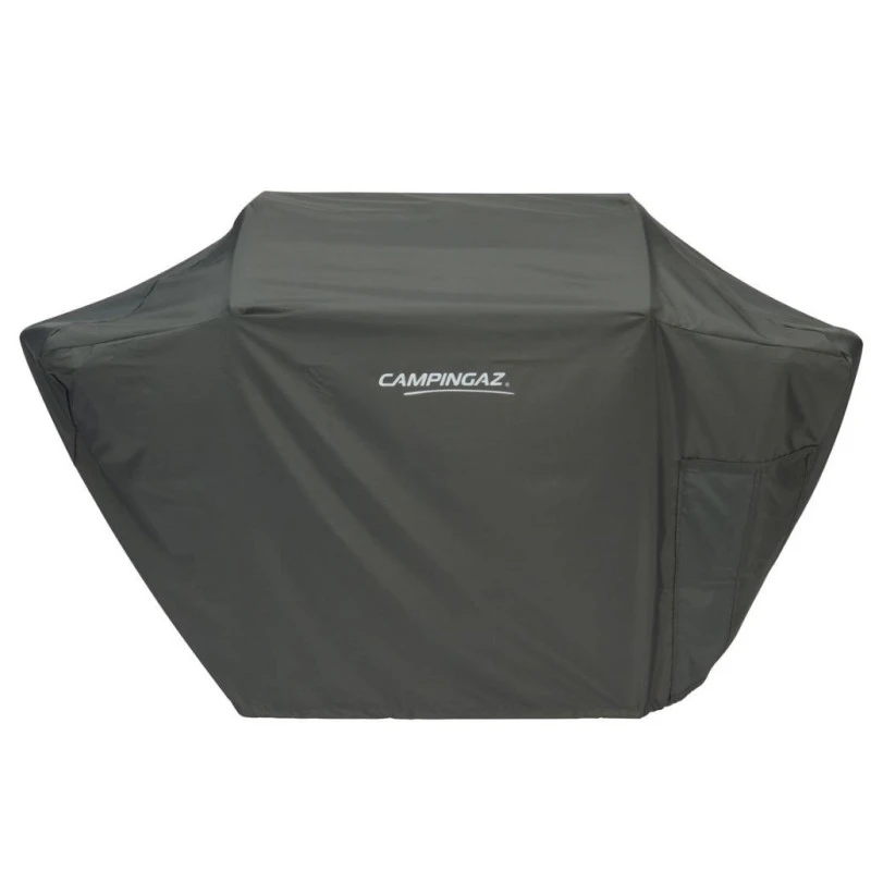Bâche, housse de rangement et protection CAMPINGAZ pour barbecue et plancha sur chariot de plein air au camping, caravane ou camping-car.