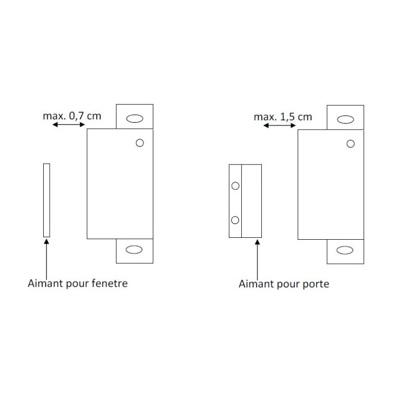 Contacteur magnétique de CNA pour porte, baie et fenêtre de camping-car, van et fourgon aménagé. Permet de détecter un mouvement de l’ouverture afin d’actionner l’alarme antivol HPS 844. Fonctionnement sur pile et connexion sans fil à la centrale.