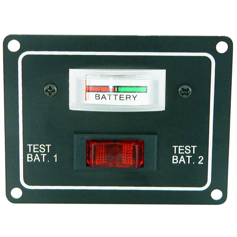Installé depuis près de 30 ans sur les bateaux de plaisance et véhicules aménagés ce contrôleur de charge simplissime ce fixe et se connecte comme un voltmètre. Il permet de tester les batteries en appuyant sur l’interrupteur, si l’aiguille ce place au milieu du cadran, la batterie est chargé, si l’aiguille atteint le haut du cadran, la batterie est en charge.