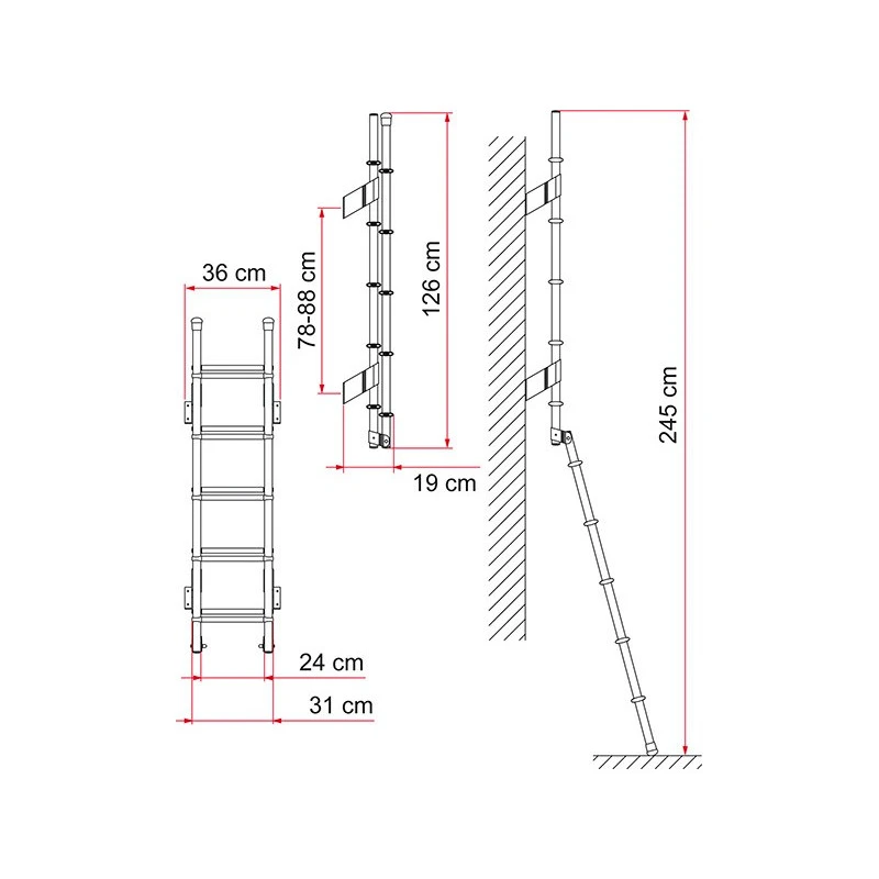 Caractéristiques de l’échelle de toit repliable pour camping-car FIAMMA Deluxe 5D :