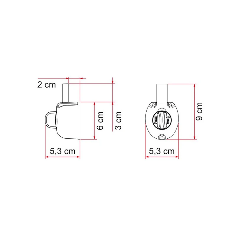 – Dimensions max. : 5,3 x 5,3 x 9 cm