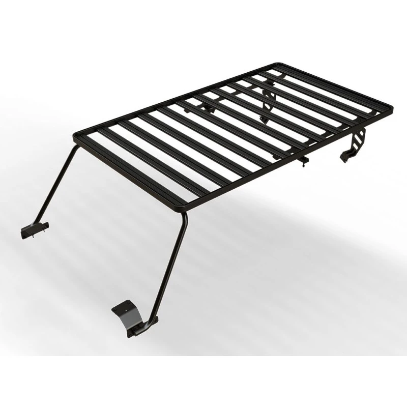 Cette galerie se fixe sur les points d’ancrage déjà existants sur le châssis et l’arceau de sécurité permettant un montage ultra solide, presque indestructible. Elle est compatible avec un toit rigide ou sans toit. Le poids est réparti de manière à ce qu’il n’y ai pas de poids sur le toit rigide.