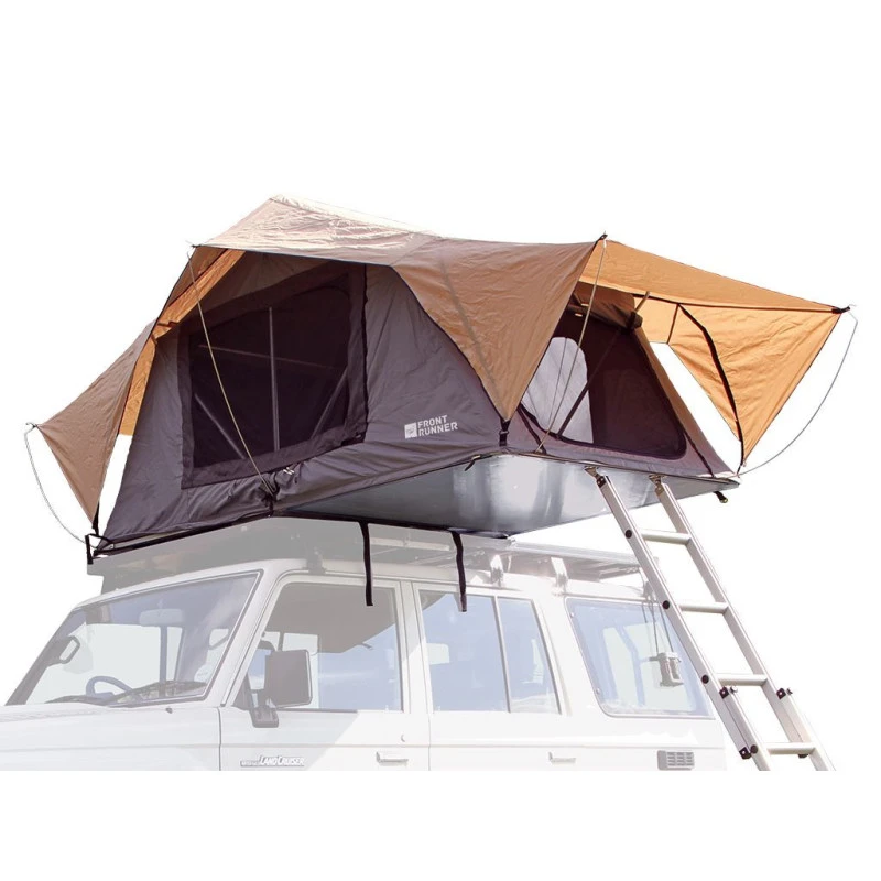 Tente de toit de la marque FRONT RUNNER, Ă ouverture manuelle, elle permet d’accueillir confortablement 2 personnes Ă bord. La tente se pose facilement sur la galerie de votre fourgon, 4×4 ou voiture.