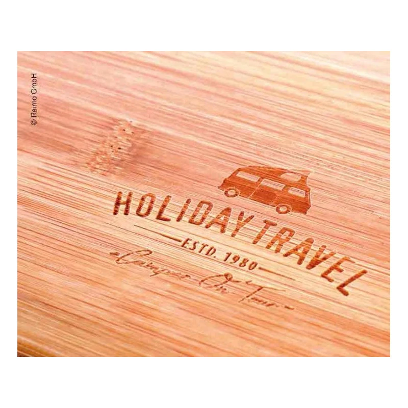 Magnifique table en bambou et aluminium de la marque Holiday Travel pour apprécier pleinement vos repas en plein air lors de vos escapades en fourgon aménagé et camping-car.