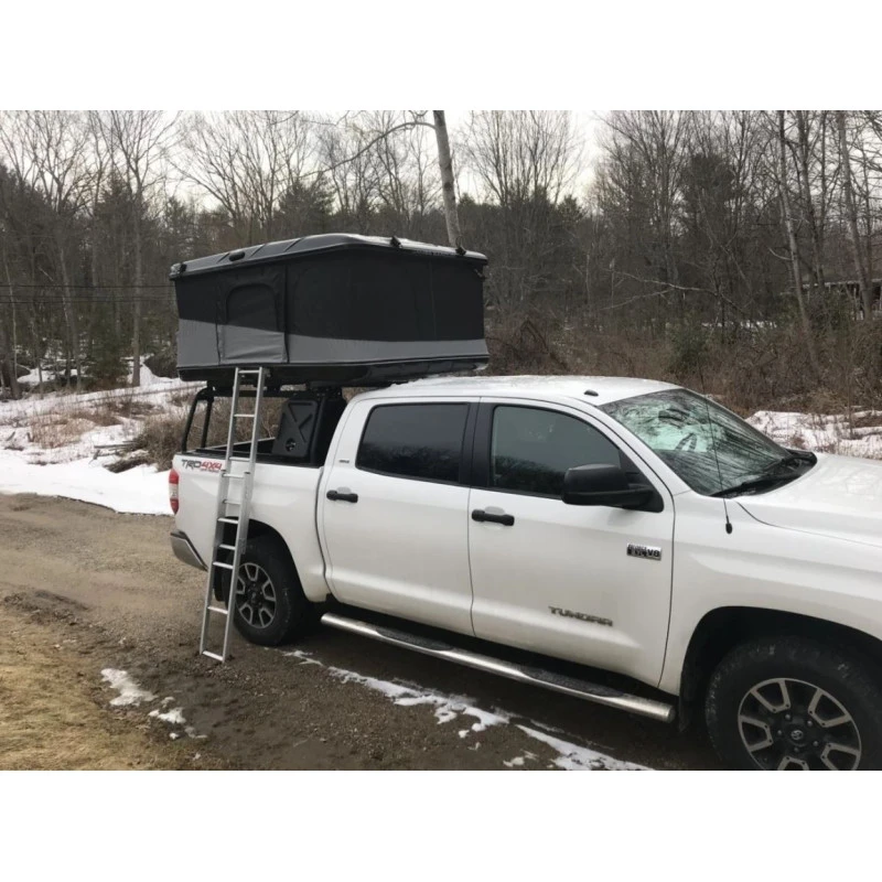 Cette tente de toit possède également une échelle pour faciliter l’accès, qui se range à l’intérieur de celle-ci pour éviter d’encombrer votre fourgon ou van aménagé. Une VMC est installée à la tente Grand Raid XL pour favoriser la circulation de l’air et éviter ainsi tout risque d’humidité. Une lampe LED amovible est également intégrée pour agrémenter vos nuits.