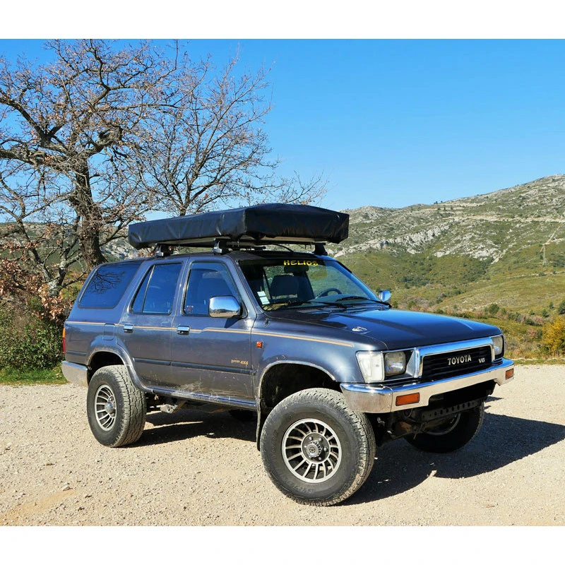 La Vision 180 est une tente de toit souple qui s’installe facilement sur les barres de toit de votre fourgon aménagé ou de votre 4×4. Une fois montée, la tente est protégée par une housse en PVC anti-UV. Le déploiement automatique se fait aisément et sans effort.