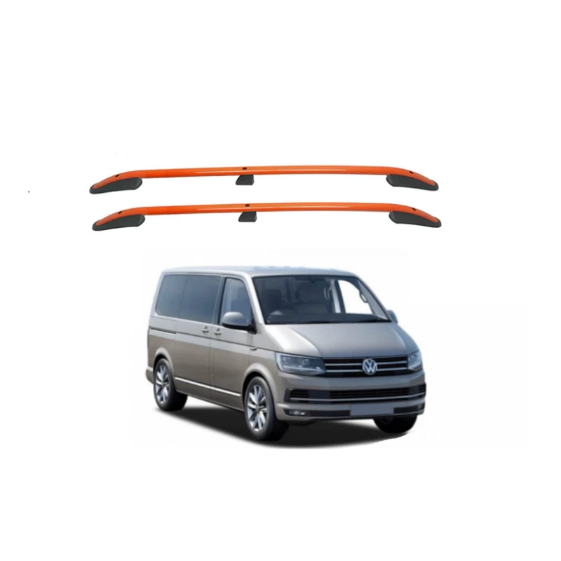 Rails de toit orange OMAC pour votre véhicule VW T6 L1 depuis 2015, certifié TÜV pour plus de sécurité lors de vos roads trip en van life ! Augmenter l’espace de rangement avec les coffres de toit, ou bien ajouter un couchage supplémentaire avec une tente de toit !