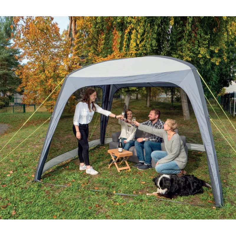 Tonnelle gonflable de la marque REIMO, la Linosa 300 est modulable grâce aux parois (fermée, avec porte ou avec moustiquaire), ainsi vous pourrez créer un espace clos et abrité du vent et de la pluie.
