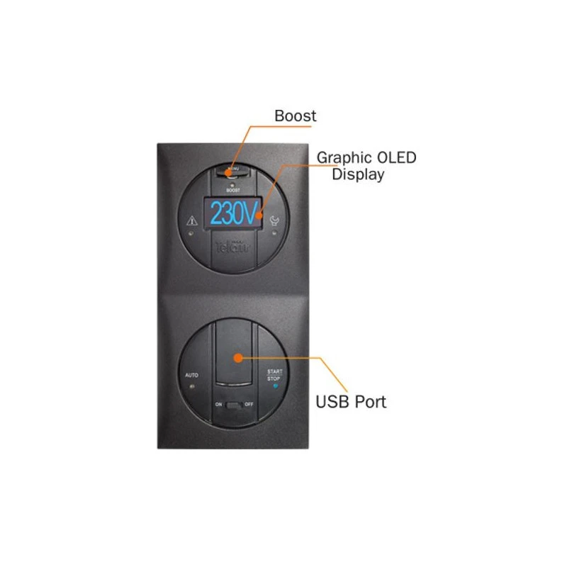 La marque Italienne TELAIR, issus du groupe TELECO a acquis au fil du temps un savoir-faire reconnu partout en Europe dans la conception et l’assemblage de groupes électrogènes de qualité, performants, sobres et silencieux. En effet, le générateur TIG 6000G est intégré dans un coffret à très bonne isolation acoustique, en outre l’électronique a été développé pour une gestion optimale des rotations par minutes limitant le bruit et la consommation de carburant. Toujours côté technologie, le démarrage peut se faire via le panneau de contrôle fourni ou une application smarthone gratuite grâce au Bluetooth intégré.