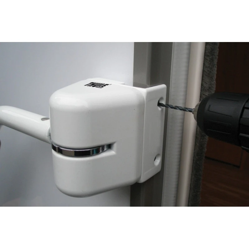Pratique, cet ensemble est conçu pour fixer les main-courantes de sécurité sur le montant de la porte plutôt que sur la paroi du camping-car. En effet, dans de nombreux cas la cloison du camping-car ou de la caravane ne peut pas être perçée car un meuble ou autre se trouve derrière. Dans ce cas, ce produit convient pour l’installation : il s’agit simplement d’un support de fixation en équerre très résistant qui se vis dans le montant de la porte.