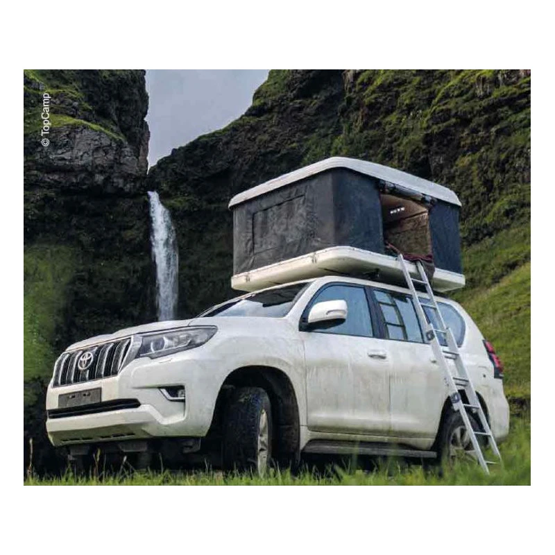 Cette tente de toit de la marque Double-Up est dotée d’une coque rigide dans laquelle se renferme un couchage pour 2, 3 ou 4 personnes selon le modèle. Totalement conçue en fibre de verre, le TOPCAMP Double-Up est très léger mais pour autant très confortable grâce à son matelas inclus. Son tissu intérieur TOP AIRTEX est respirant ; il dirigera la vapeur d’eau vers l’extérieur et imperméable même en cas de fortes pluies !