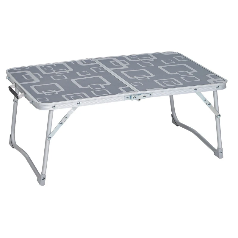 Petite table valise ultra compacte, basse et pliante pour profiter pleinement de vos déjeuners en camping ou à la plage lors de vos vacances en camping-car.